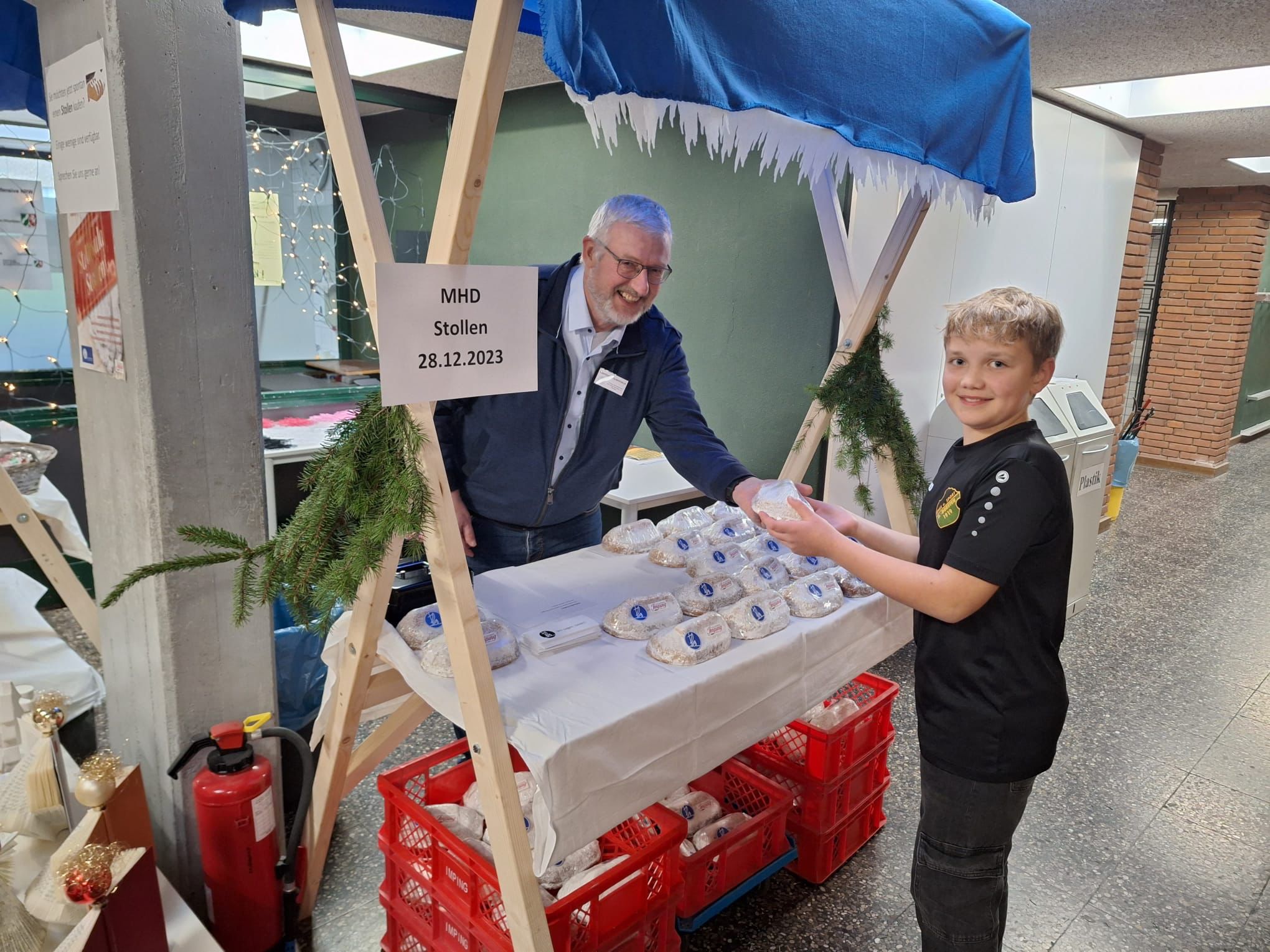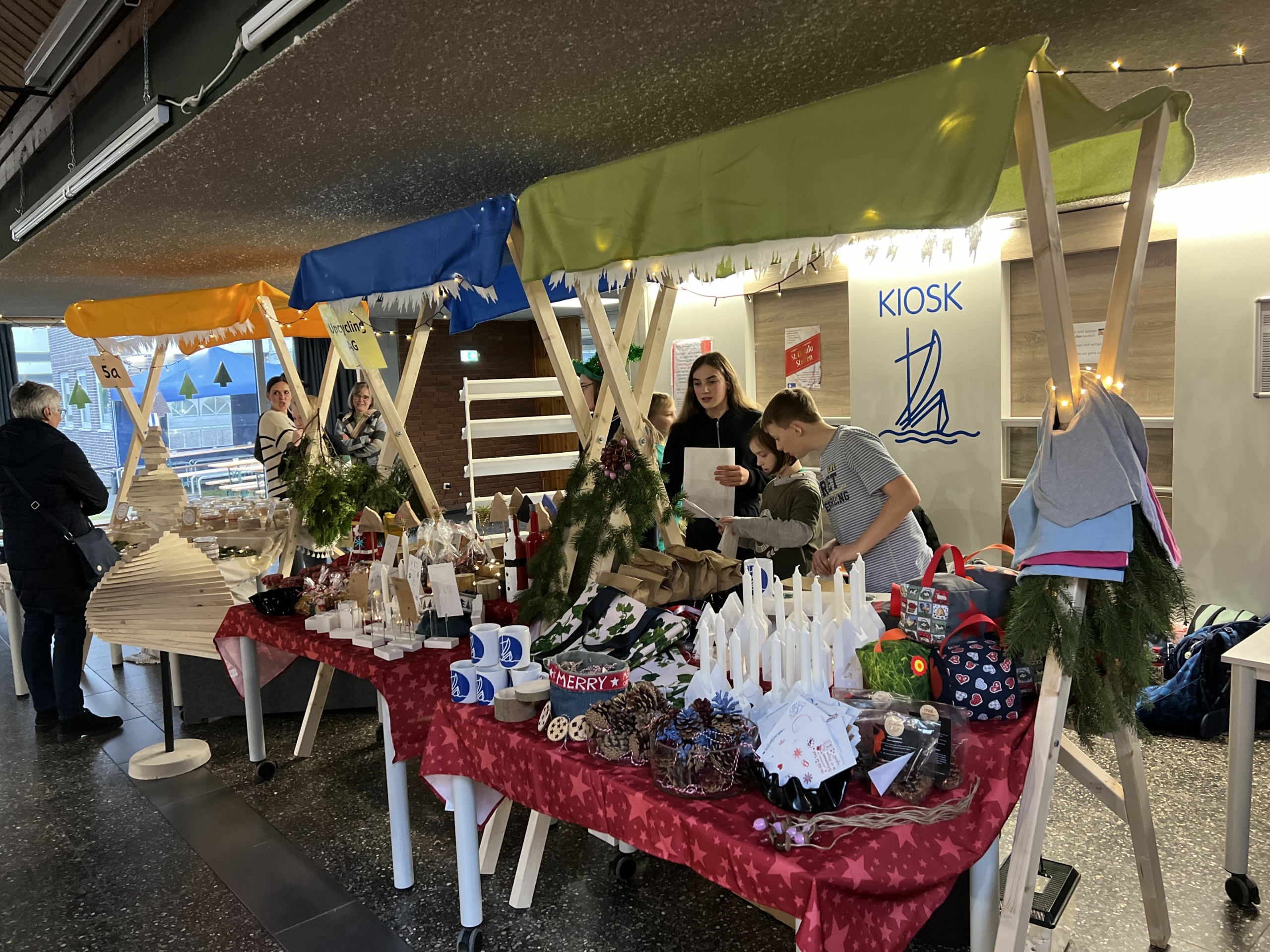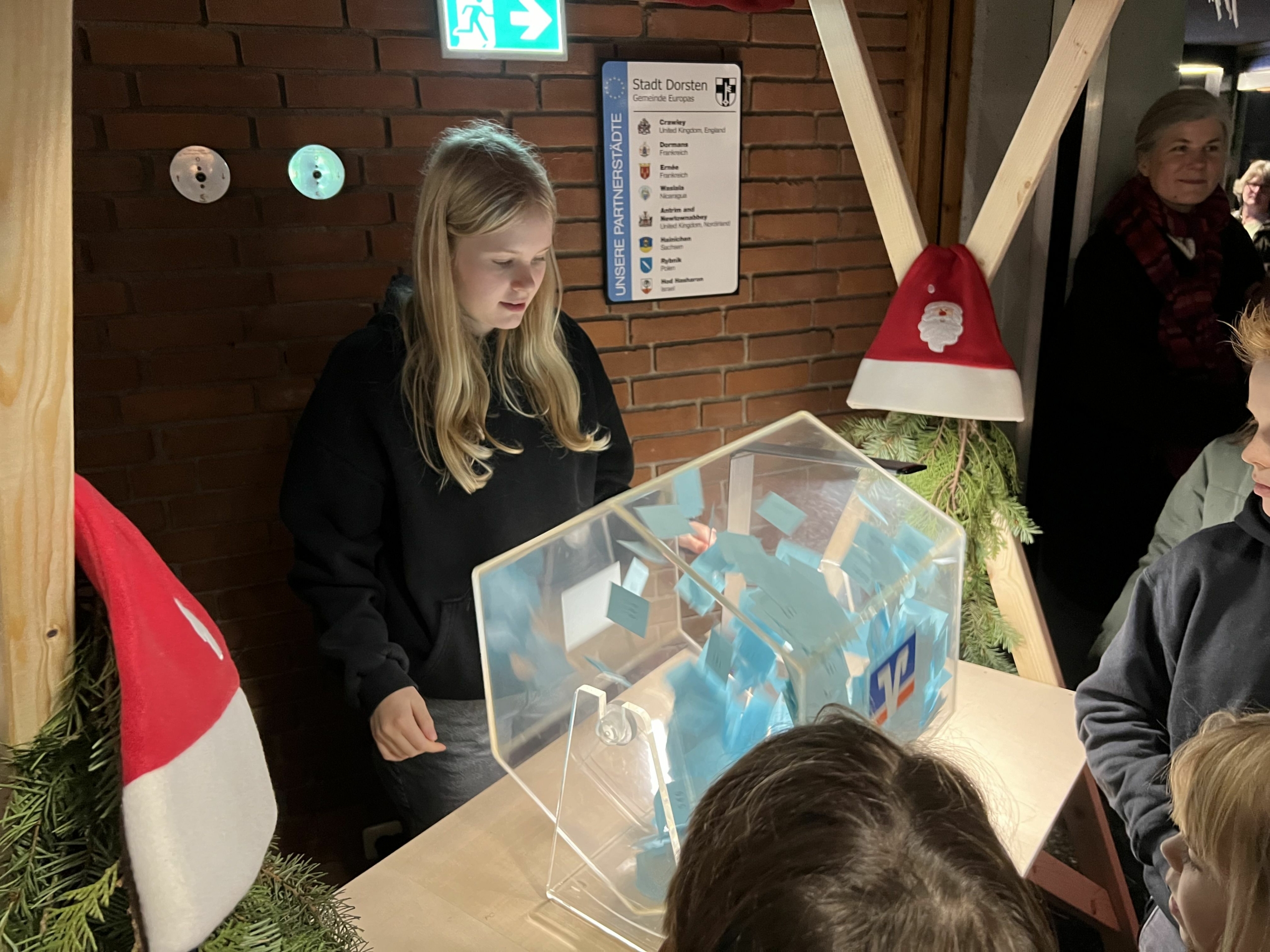 „Es ist fantastisch, dass wir unseren großen Nikolausmarkt in so festlicher Atmosphäre mit der gesamten Schulgemeinschaft und so vielen Interessierten erleben konnten! Toll, dass sich alle Klassen so engagiert haben und dadurch etwas Besonderes entstehen konnte!“: Durchweg positiv schaut Schulleiterin Miriam Baumeister auf den Nikolausmarkt der Realschule St. Ursula zurück, der am 8.12. stattfand. An eigens für dieses Ereignis von Schülerinnen und Schülern der Werk-AG hergestellten, adventlich geschmückten Ständen verkauften die Klassen liebevoll Selbstgebasteltes und andere Geschenkartikel, die in den vergangenen Wochen und Monaten entstanden waren. Glücklich und stolz präsentieren die Schülerinnen und Schüler „ihre“ Werke und freuten sich über das große Interesse der Besucherinnen und Besucher. Das vielfältige Angebot lieferte wohl so Manchem die zündende Geschenkidee für das bevorstehende Weihnachtsfest. Als weiteres Highlight fand eine Verlosung von XL-Nikoläusen statt.