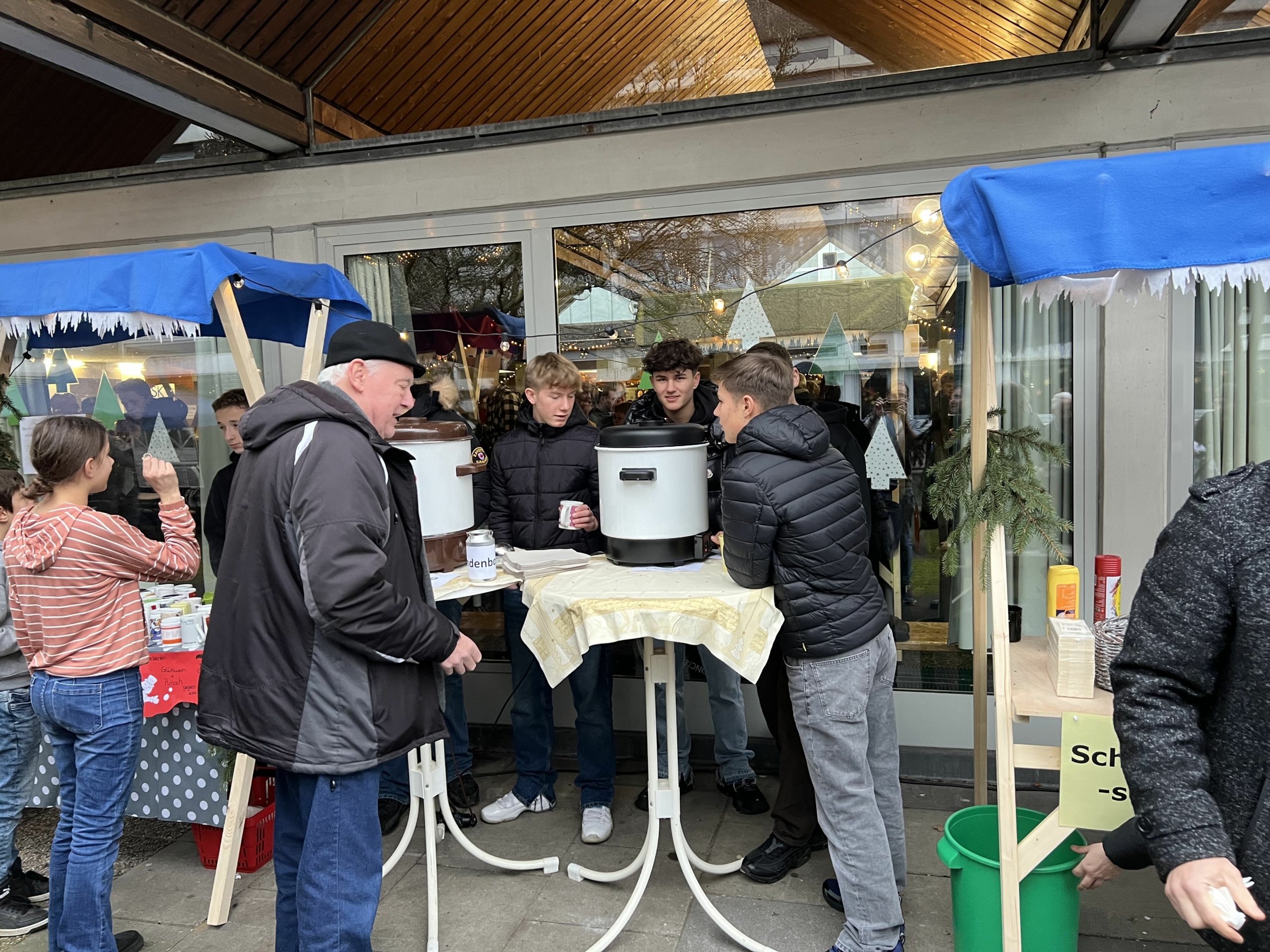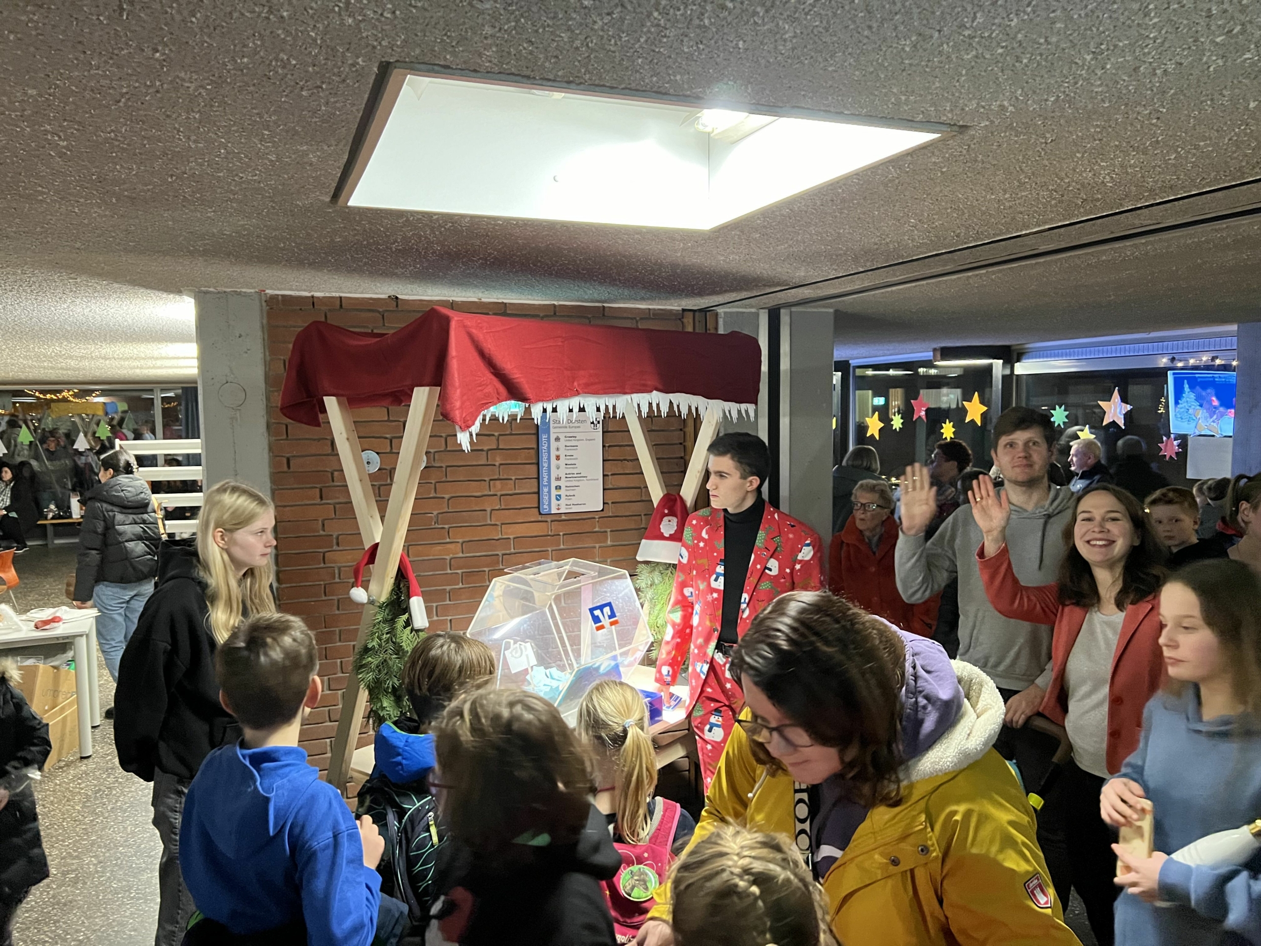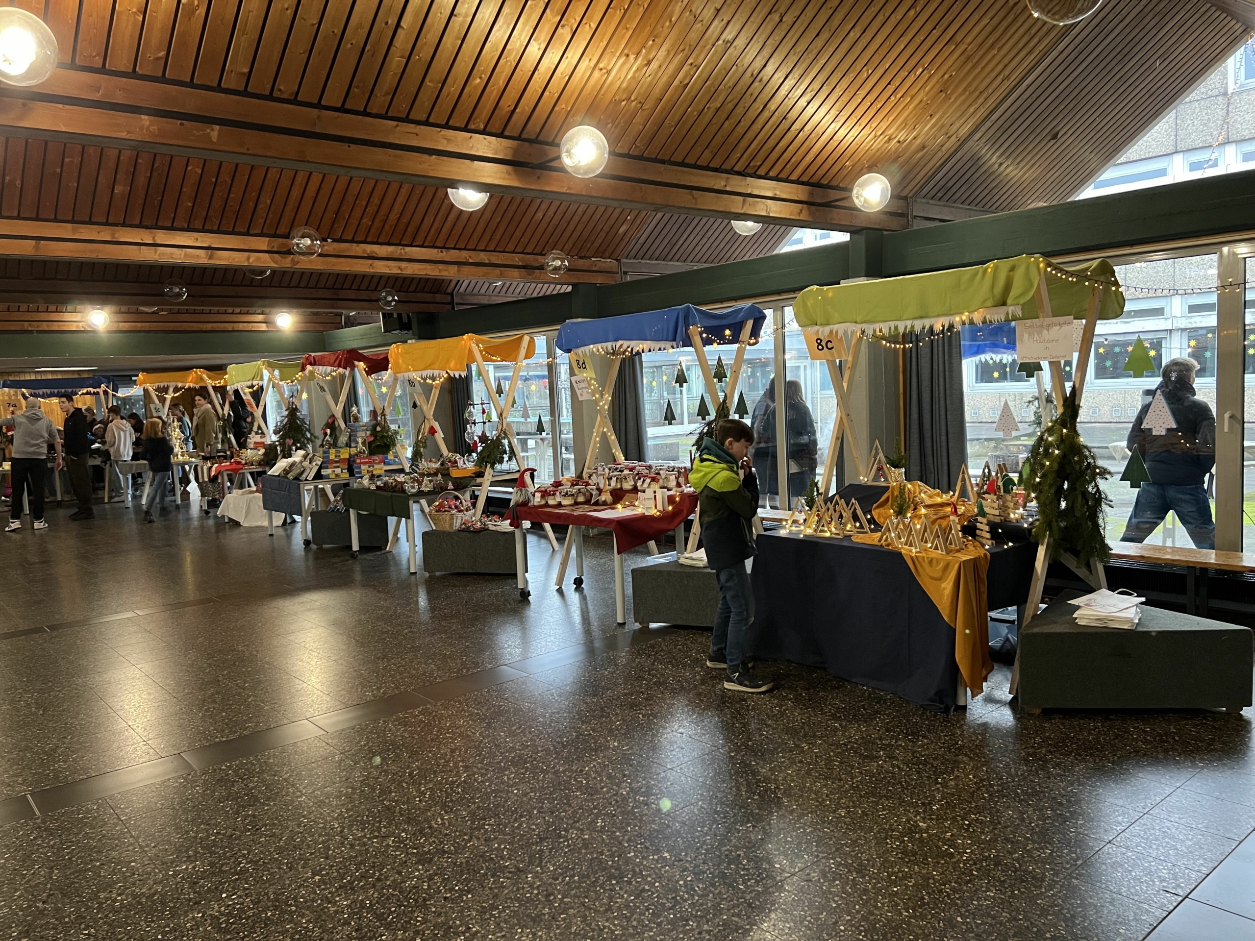 Auch für das leibliche Wohl der Besucher und Besucherinnen war gesorgt: Ob Kuchen, Waffeln, Würstchen oder Punsch – das Angebot ließ keine Wünsche offen. Die gemütliche Atmosphäre in der stimmungsvoll erleuchteten Pausenhalle, den angrenzenden Räumen sowie dem Binnenhof nutzten dann auch zahlreiche Gäste, um miteinander ins Gespräch zu kommen und entspannt in das zweite Adventswochenende zu starten.