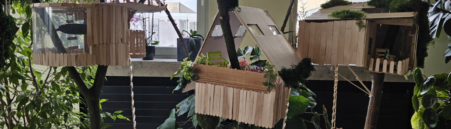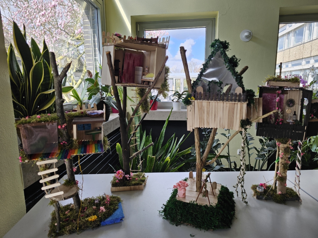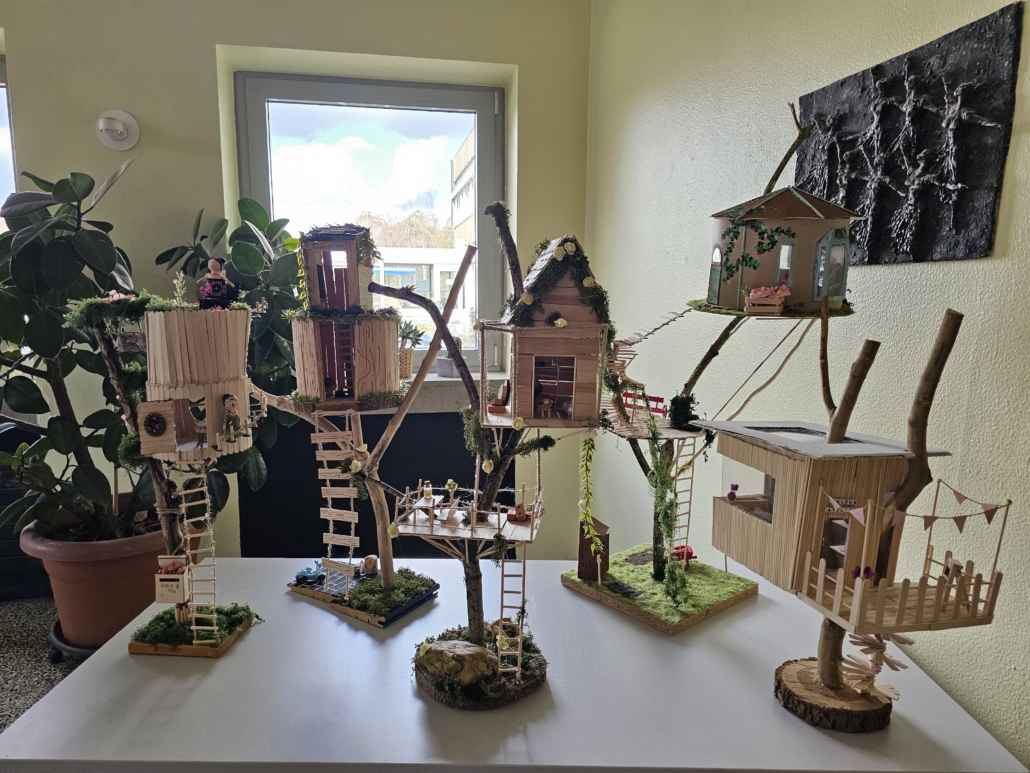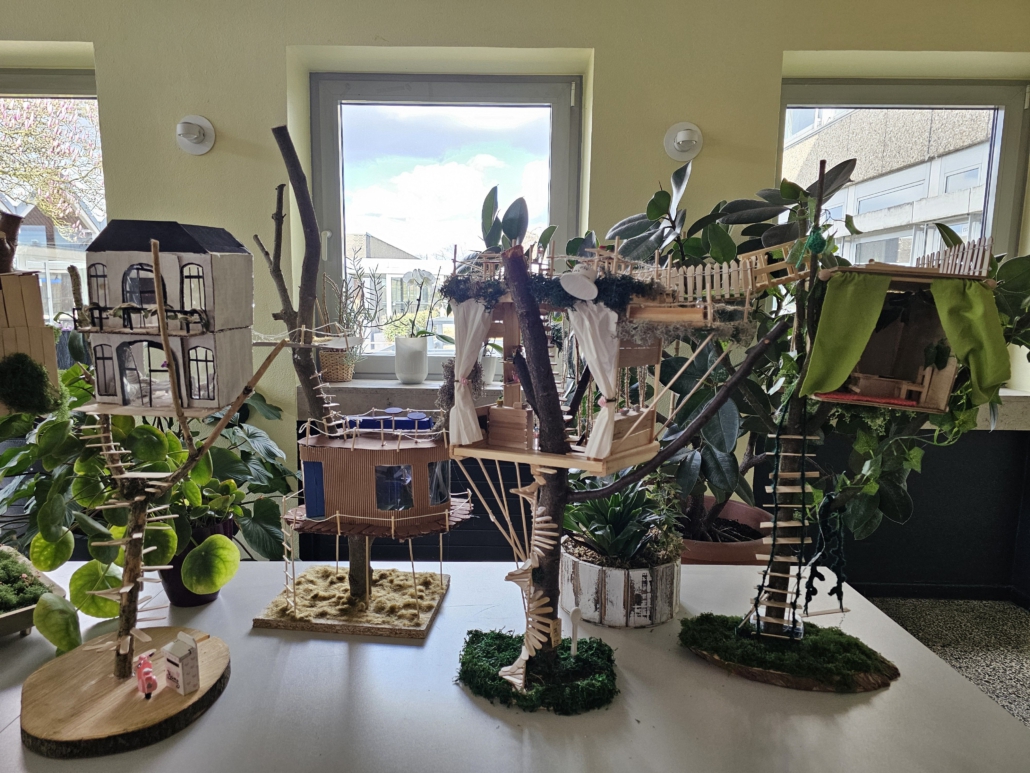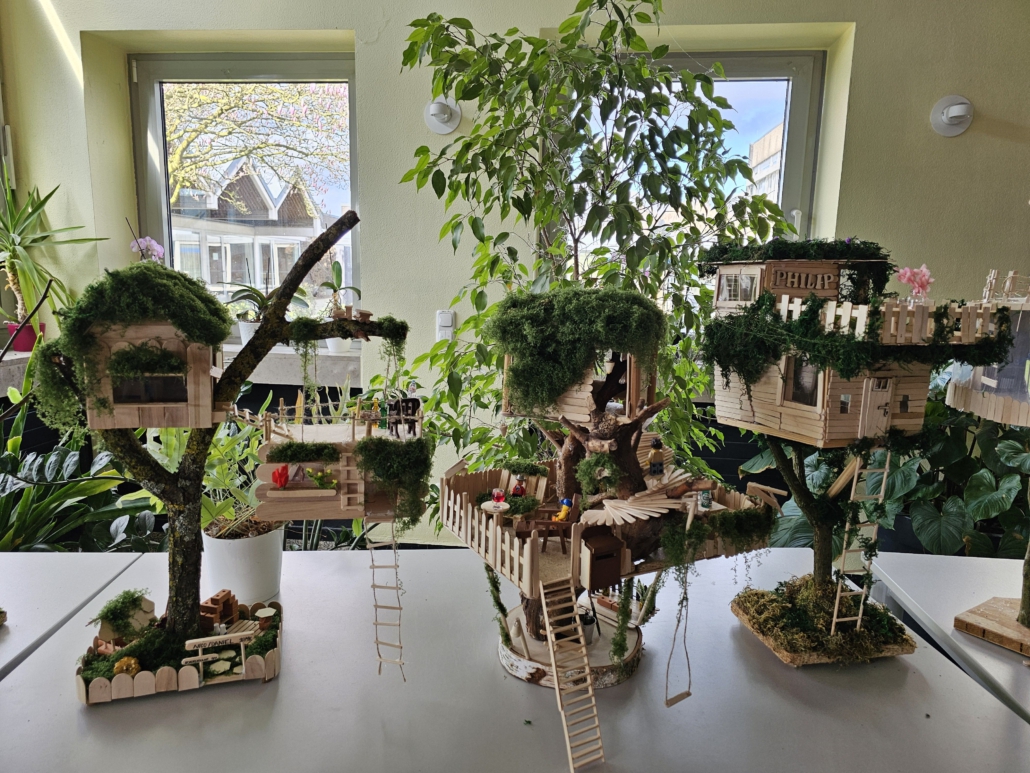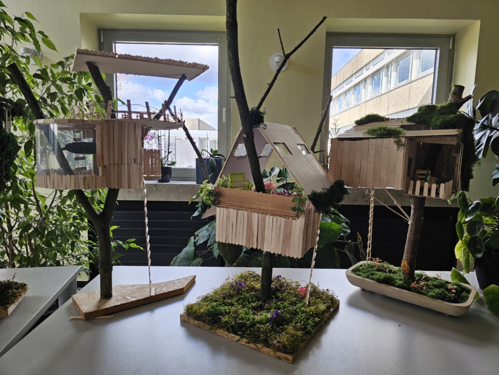 Nach der Theorie kam die Praxis: Die Jugendlichen entwarfen ihr eigenes Baumhaus bauten es als Modell. Die Häuser sollten gleichzeitig stabil, kreativ und nachhaltig gestaltet sein.
