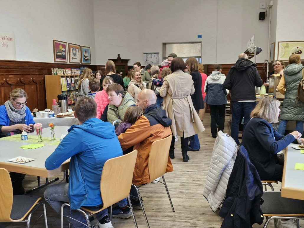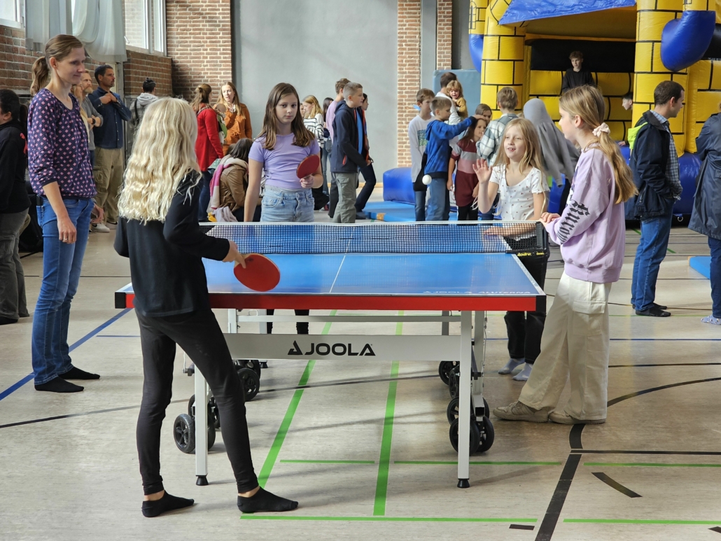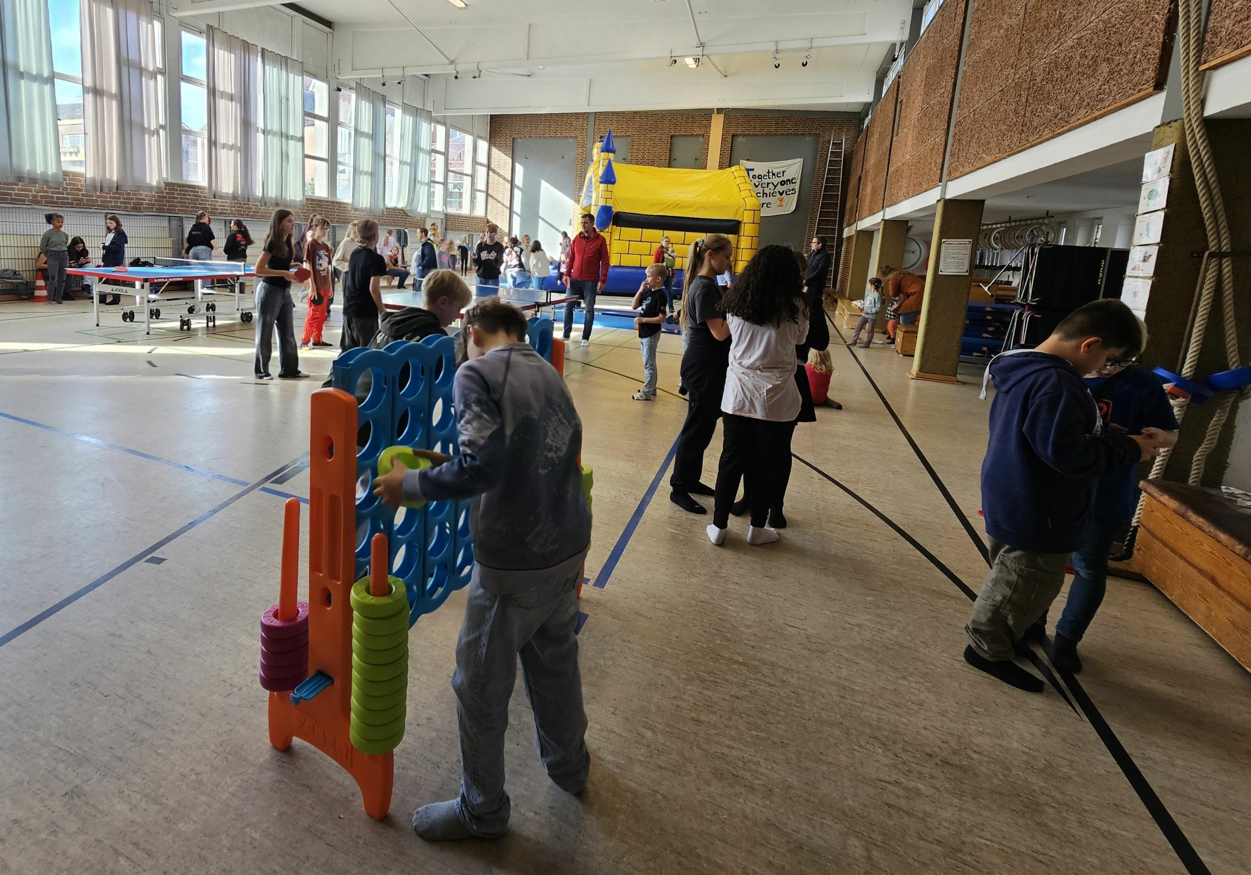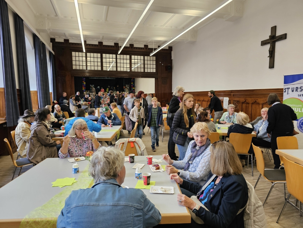 Bekannte Gesichter nach langer Zeit wieder sehen, miteinander ins Gespräch kommen bei Kaffee, Kuchen und anderen Leckereien, Spaß und Spiel …. Beim großen Familienfest der Ursulaschulen am Gymnasium anlässlich des Jubiläumsjahres war für jeden etwas dabei! Eingeladen waren alle Schülerinnen und Schüler mit ihren Familien, die Ehemaligen sowie alle den Ursulaschulen freundschaftlich Verbundenen. Die Kinder genossen es, sich bei den in der Sporthalle aufgebauten Spielen und auf der Hüpfburg so richtig auszutoben, während die Erwachsenen die Gelegenheit nutzten, sich auszutauschen. Musikalisch untermalt wurde das gut besuchte Fest von der Big Band Dorsten, die von der Sängerin Romy Camerun unterstützt wurde. Viele Besucher und Besucherinnen nahmen gerne an der großen Tombola des Vereins zum Erhalt der Ursulaschulen teil. Bevor jedoch ausgelost wurde, welche Gäste sich über die tollen Preise freuen durften, wurde ein originales Bild von Tisa von der Schulenburg, Schwester Paula, versteigert. Ein schönes Fest in toller Atmosphäre! Wir bedanken uns bei allen Gästen, die es zu etwas ganz Besonderem gemacht haben.