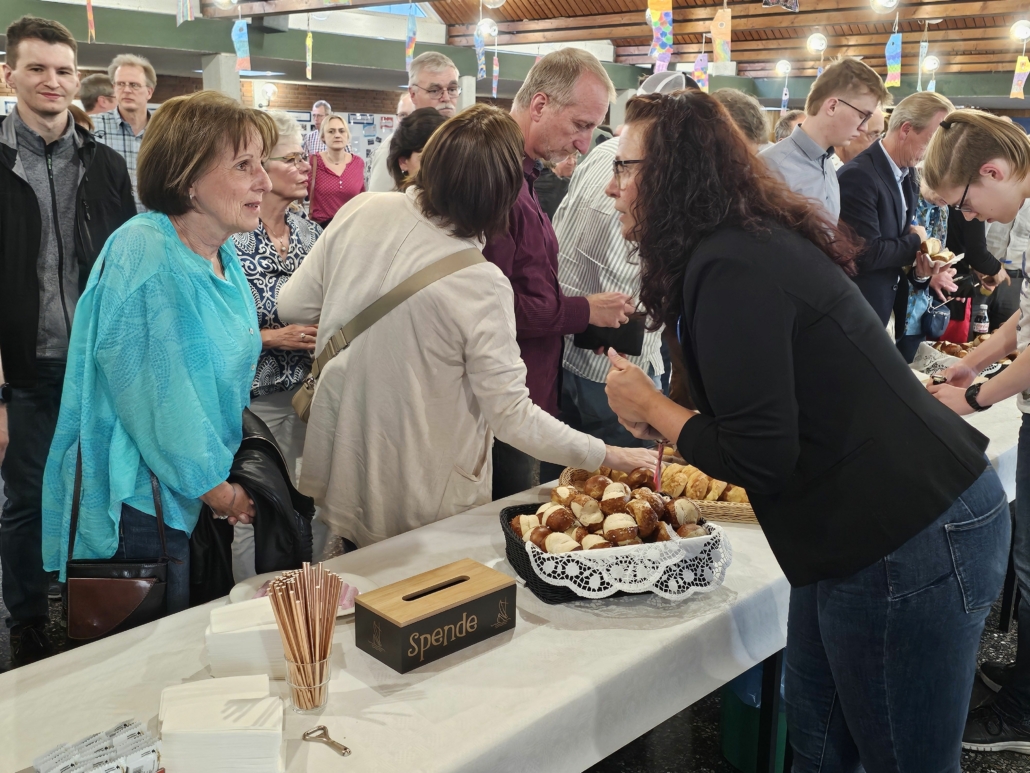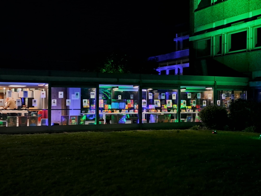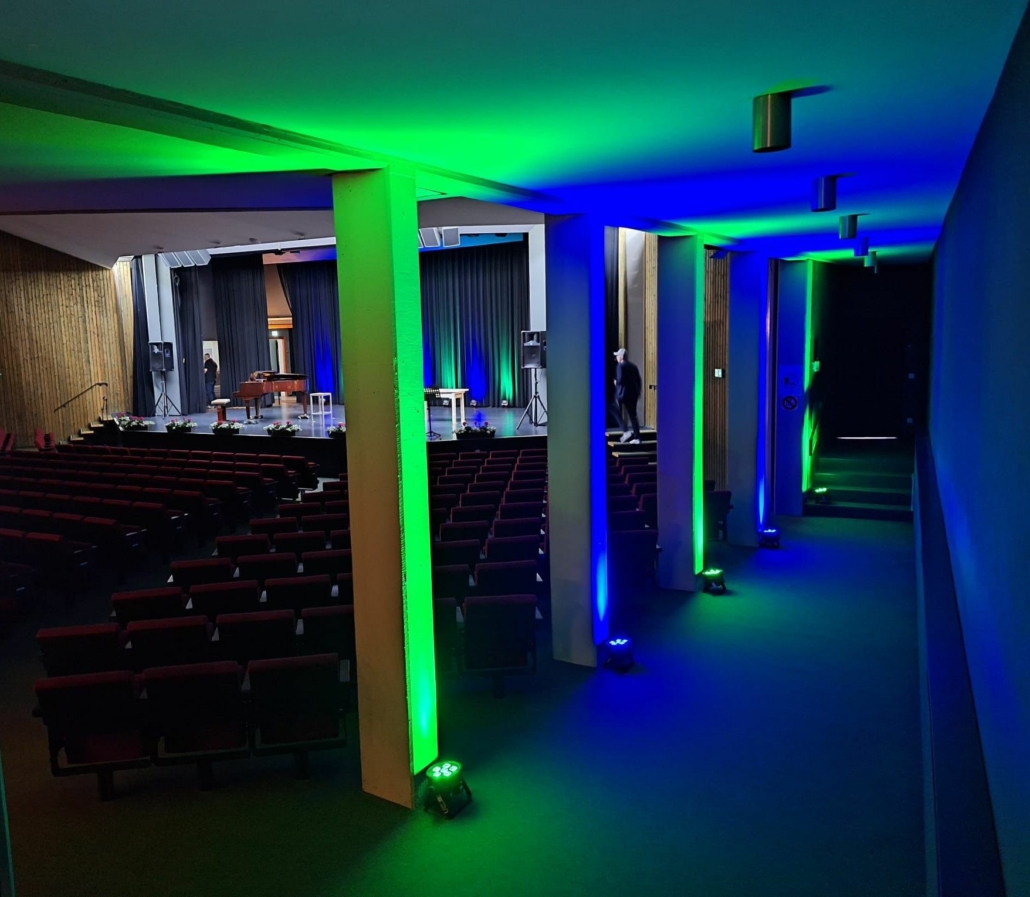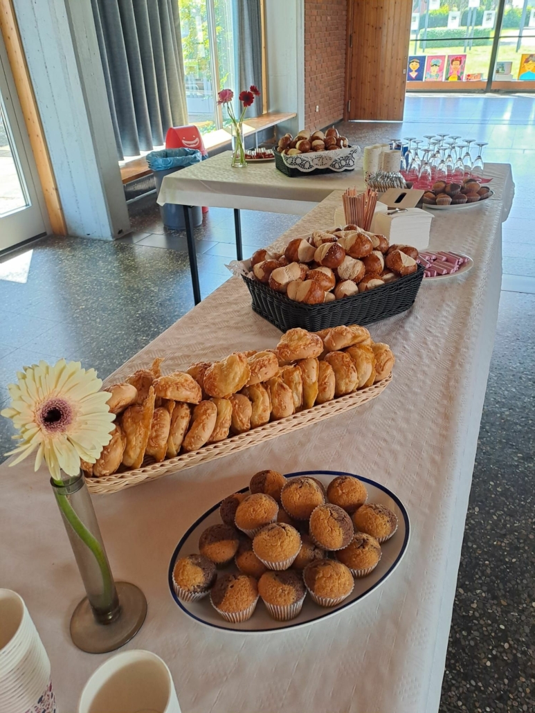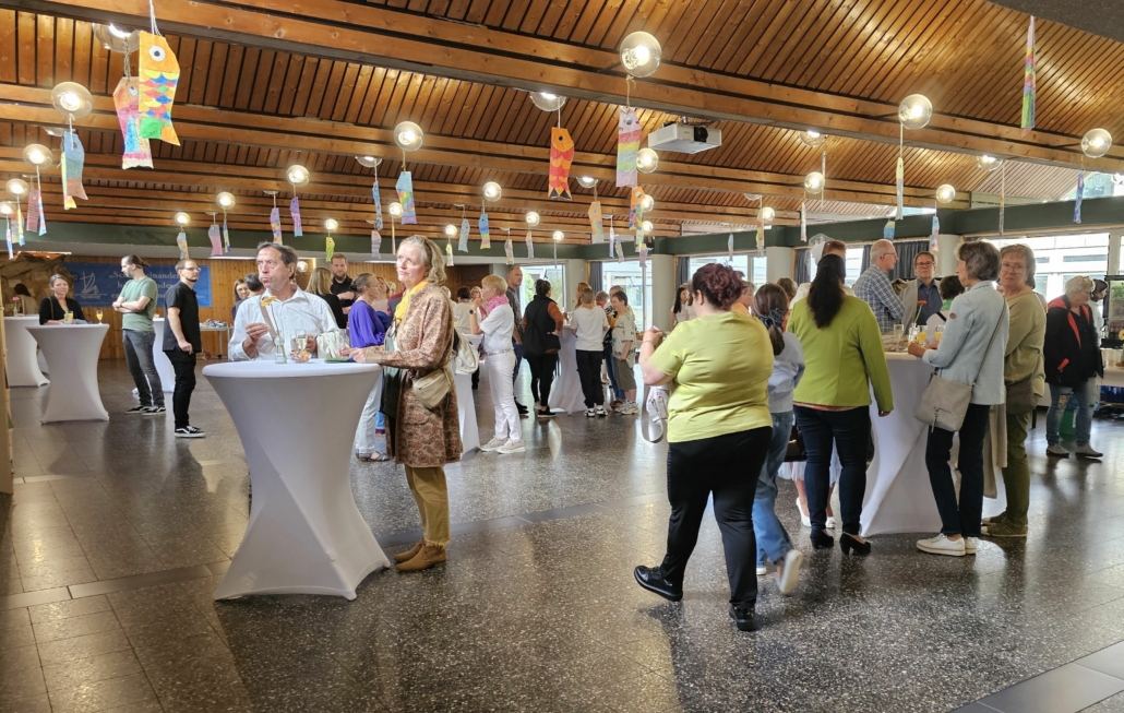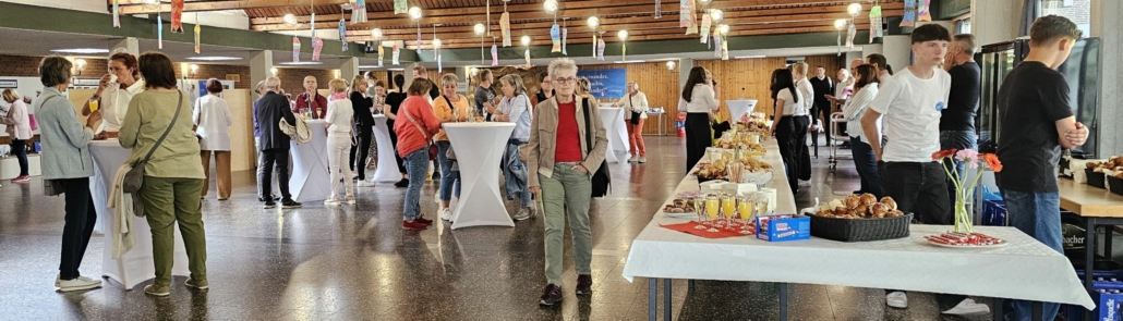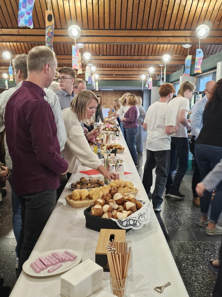Neben vielen kulturellen Highlights gab es auch immer wieder Zeit und Raum für ein gemütliches Beisammensein: Die Gäste nutzten gern die Pausenhalle, um bei süßen oder salzigen Snacks miteinander ins Gespräch zu kommen. Nach der Veranstaltung sorgte das professionell illuminierte Schulgebäude dafür, dass die Gäste sich in ganz besonderem Ambiente begegnen konnten. Ein schöner Ausklang eines rundum gelungenen Abends!