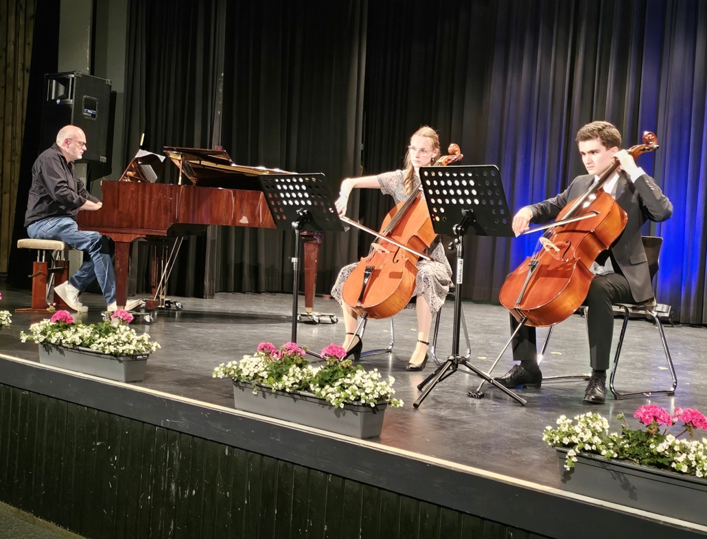 Marie-Sophie Kessler, ehemalige Schülerin unserer Schule und Finalistin bei „The Voice Kids“, sorgte mit ihrer kraftvollen Stimme für Gänsehautmomente. Zudem brachte der Kleine Chor Buldern unter der Leitung von Musiklehrer Jörg Overgoor gekonnt-souverän ein abwechslungsreiches Repertoire auf die Bühne. Hannah Nienhaus und Lukas Baumeister entführten mit dem Cello-Duett Salut d’Amour ins Reich der klassischen Musik.